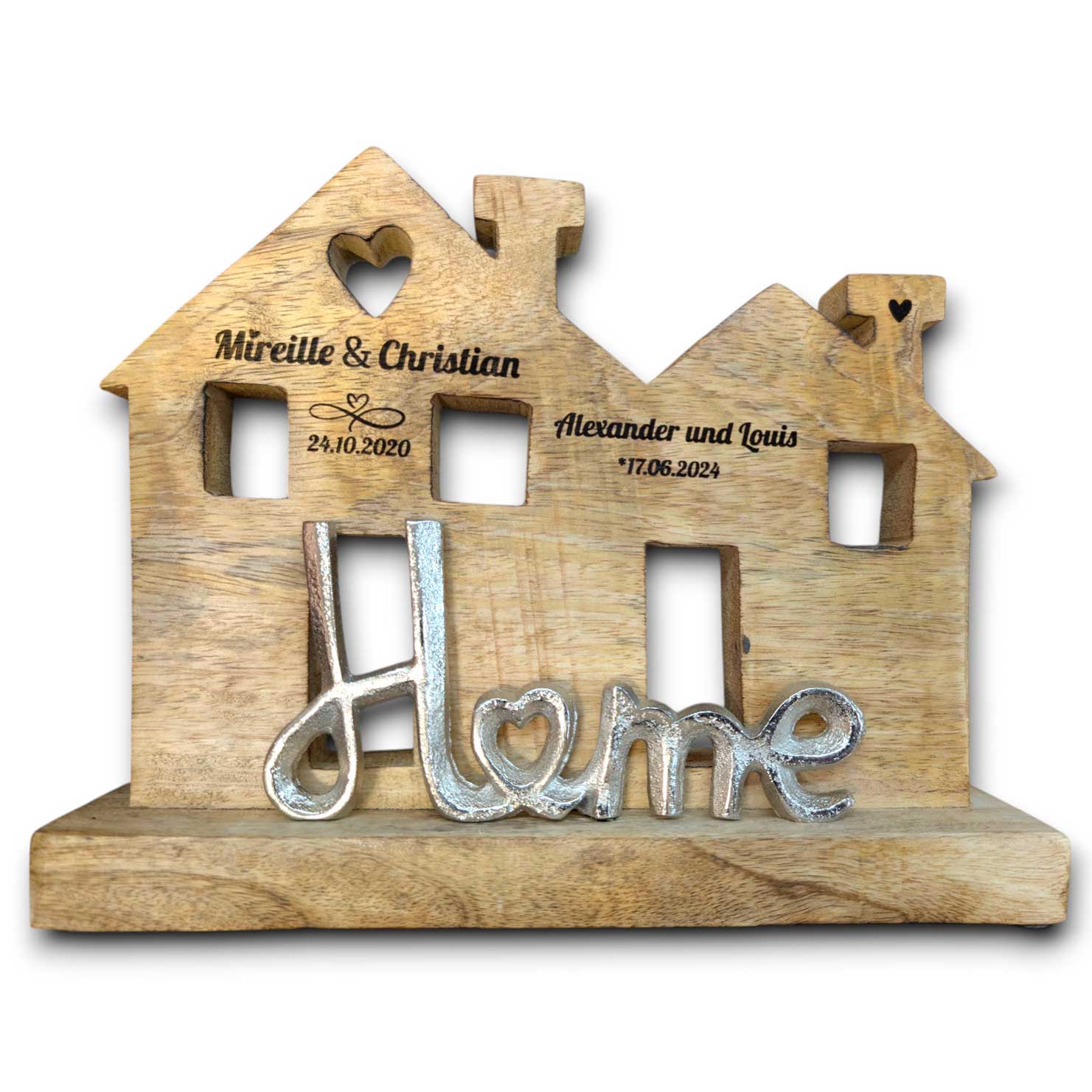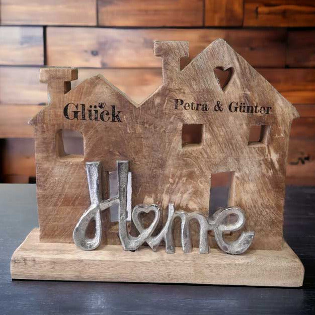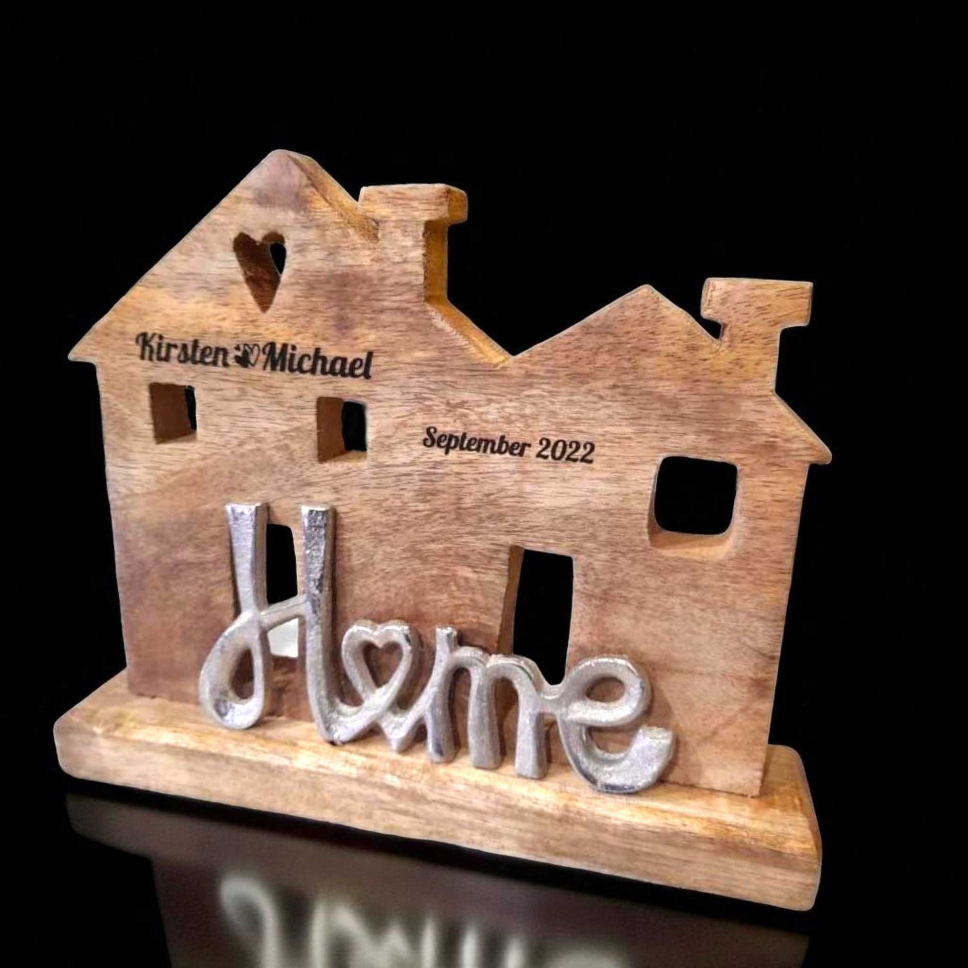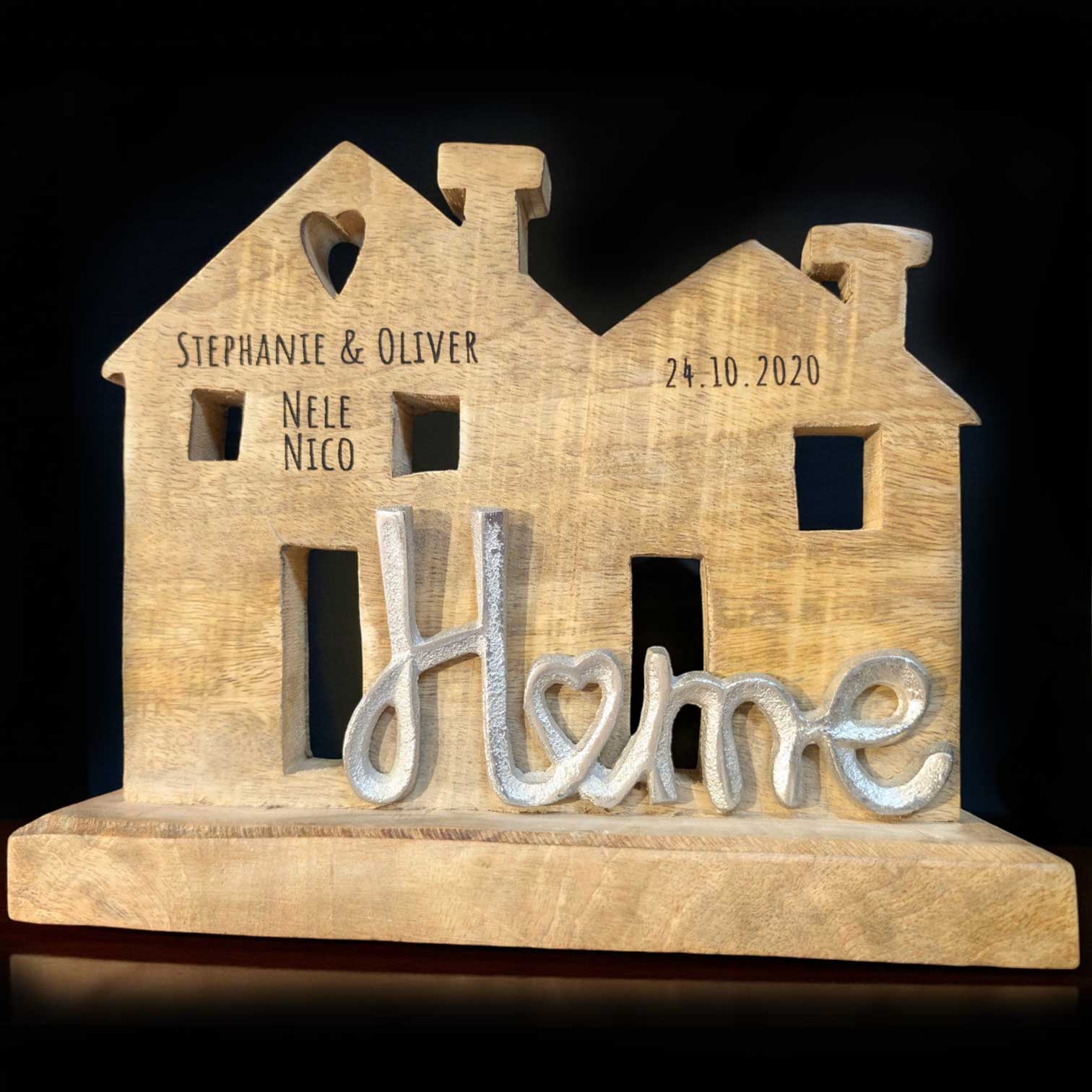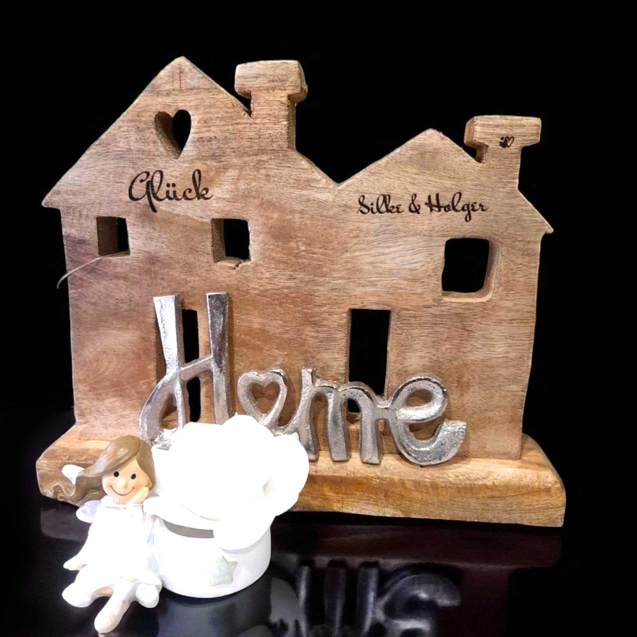 Holzhaus Schriftzug "Home" 24x21x7 cm personalisiertes Geschenk