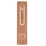 Aus hochwertigem Kirschbaumholz gefertigt zeigt das Lesezeichen einen stilvollen Herzausschnitt und das Wort Geliebt.