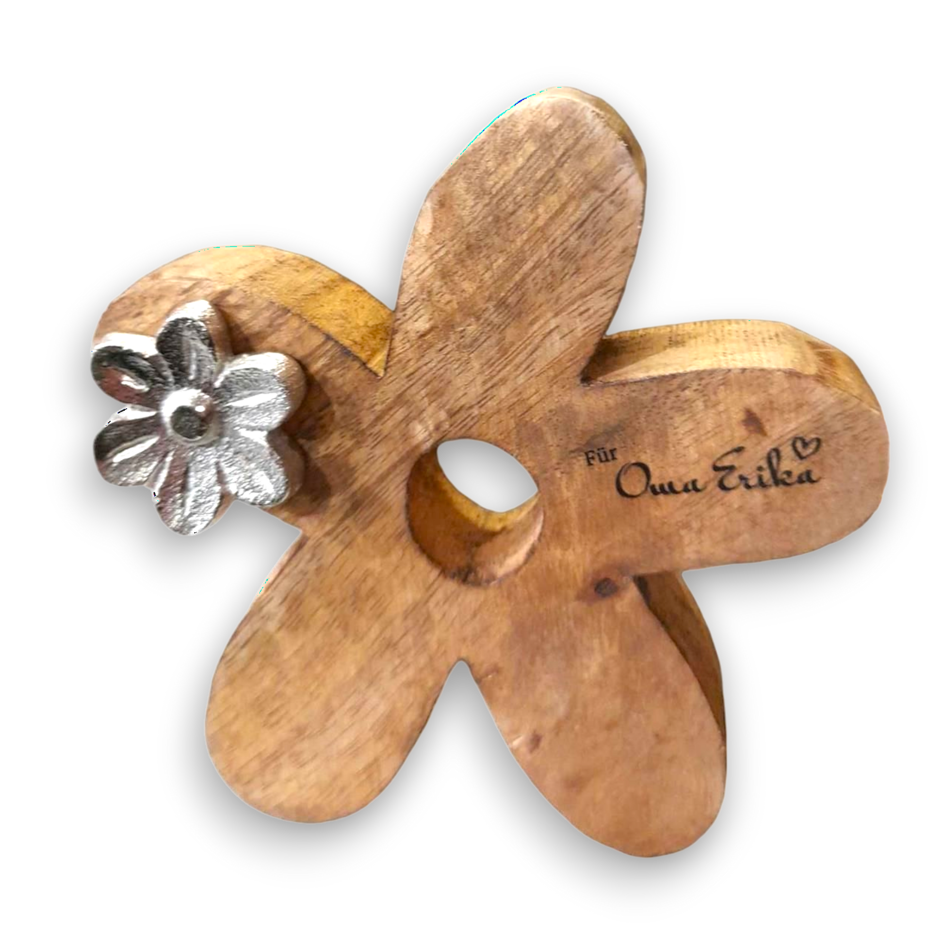 Holzblume aus Mangoholz 15cm | Personalisiertes Geschenk