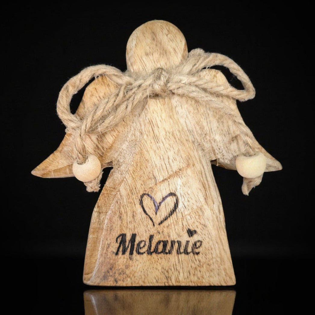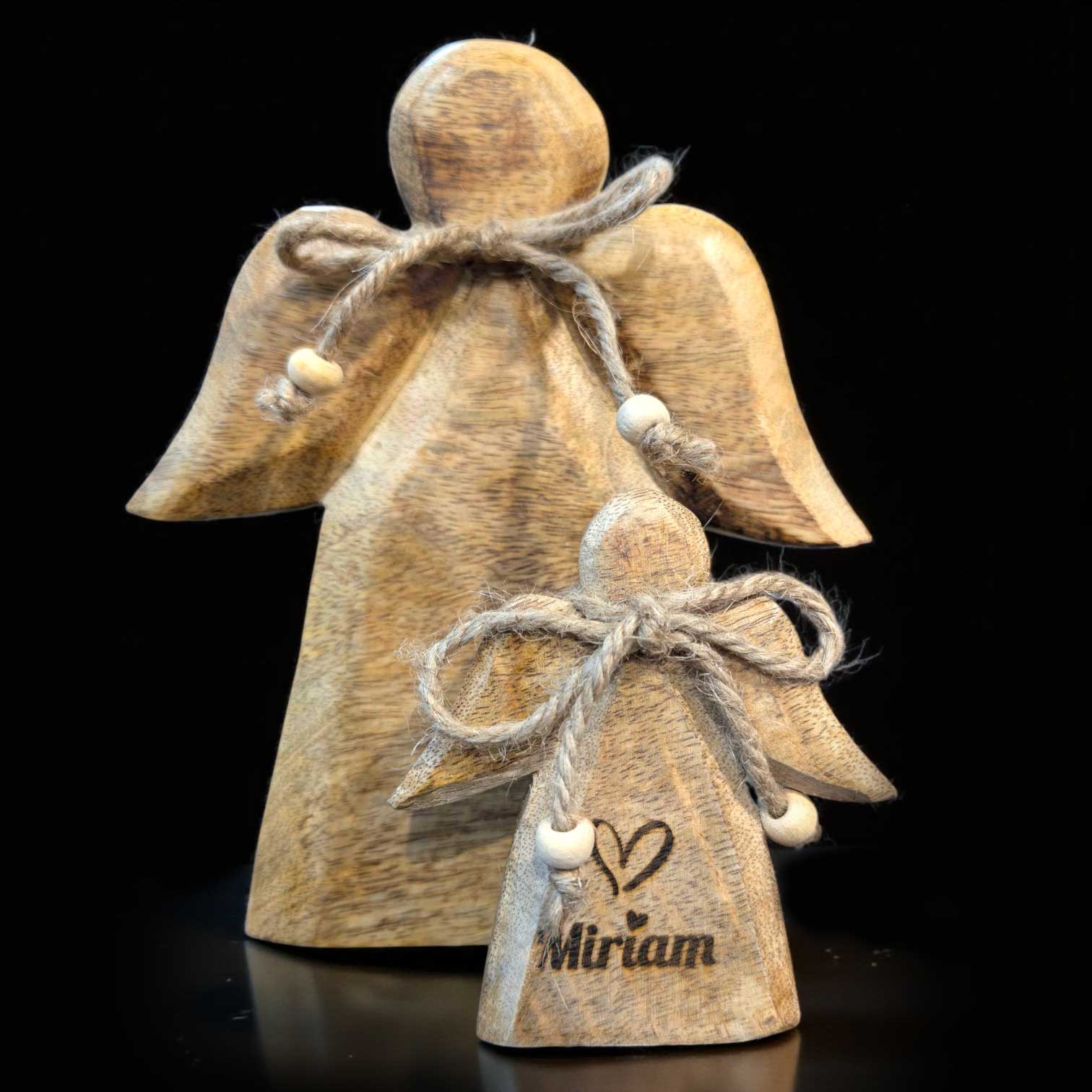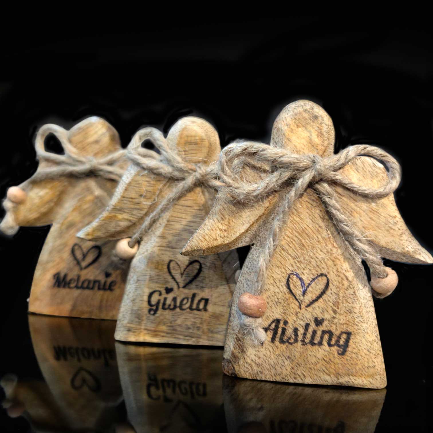 Holzengel klein mit Namens-Gravur aus Mangoholz 10cm mit Schleife | personalisiertes Geschenk
