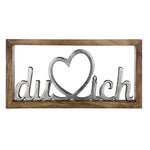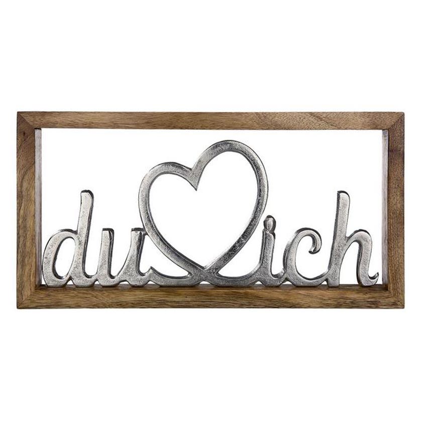 So stilvoll und elegant kann romantische Dekoration sein. Diese hochwertige Wanddekoration ist aus einer Kombination aus Mangoholz und silbernem Aluminium gefertigt und zeigt den Schriftzug "du♡ich" welcher durch ein großes Herz verbunden ist. Mit einer Länge von 40cm ist das Wandbild ein wahrer Blickfang un durch die gedeckten Farben übt es sich doch gleichzeitig in Zurückhaltung.