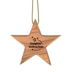 Holzstern mit gelasertem Text "Gesegnete Weihnachten", 8 cm