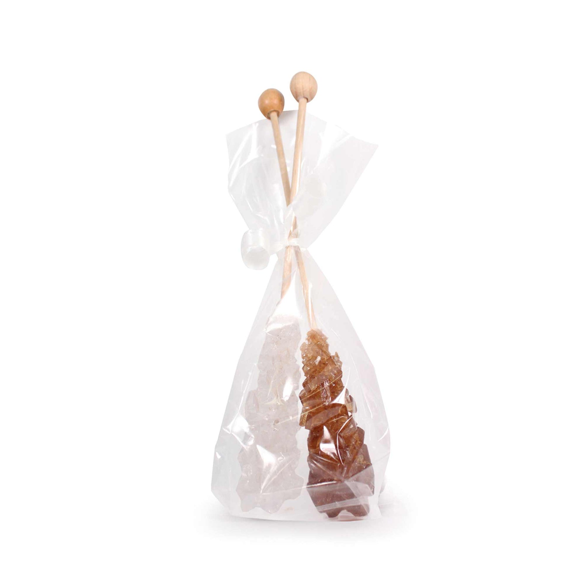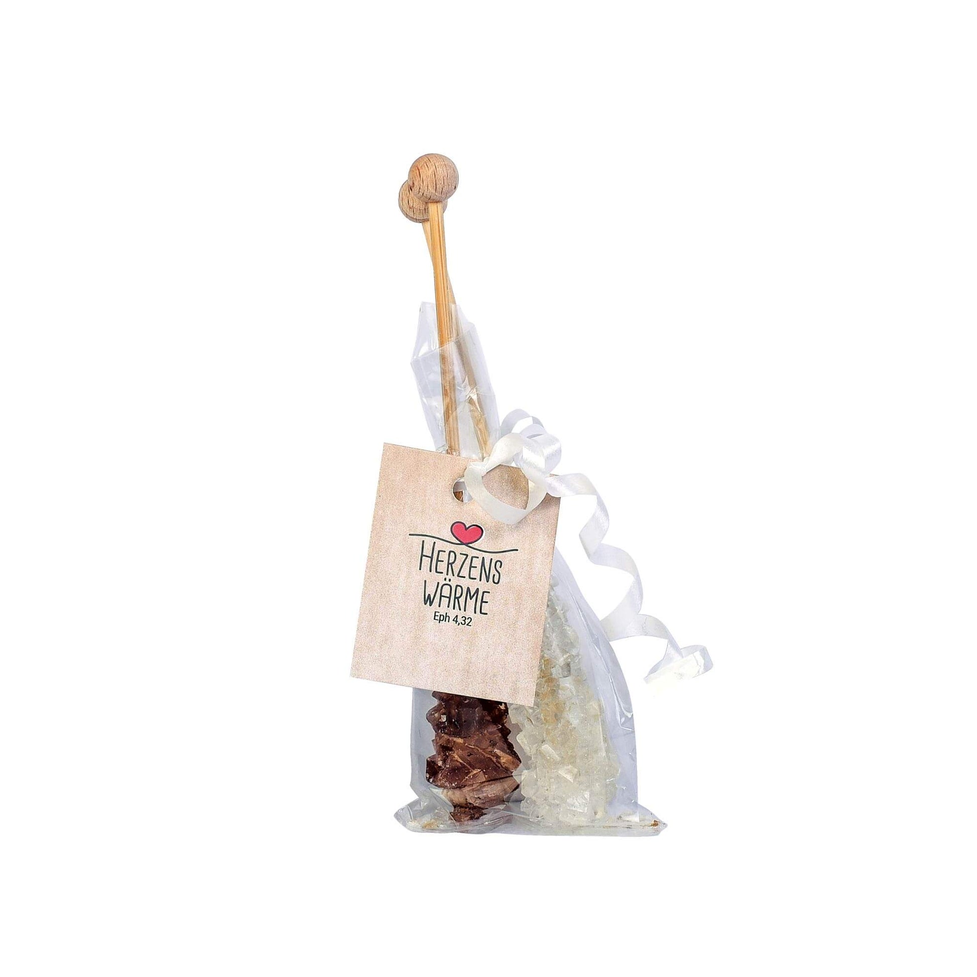 Die zwei in Geschenkfolie verpackten Kandis-Sticks (weiß/braun) sind verziert mit liebevoll gestaltetem Etikett. Höhe der Sticks 14cm, 2 x 12,5 g.