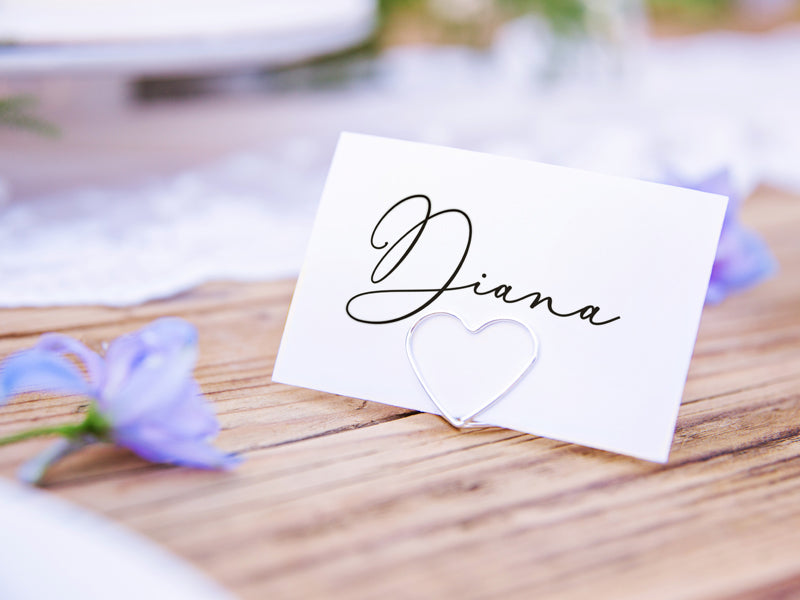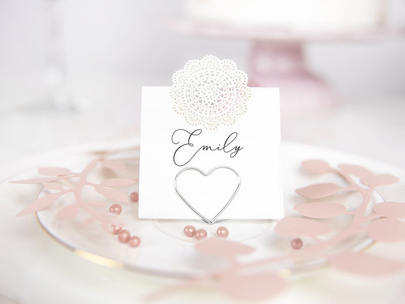 Diese kleinen Herzen haben ganz vielfältige Einsatzmöglichkeiten, ob als Tischkartenhalter, Fotohalter oder zur Aufbewahrung von Memos. Sie sind perfekt als Platzkartenhalter oder zur Tischnummerierung bei Hochzeiten sowie zur Beschriftung des Buffets geeignet.