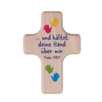 Kinderkreuz mit Namen | Handschmeichler Hände "..und hältst deine Hand über mir"