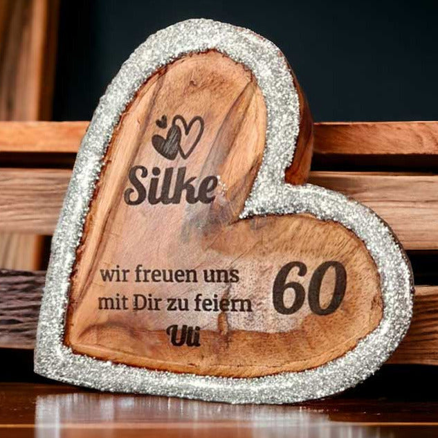 Holzherz mit silbernem Rand 12x12 cm personalisiertes Geschenk
