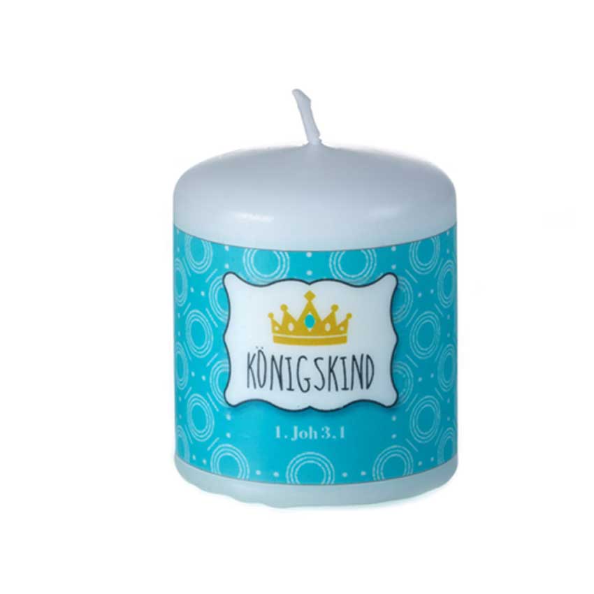 Kerze mit farbigen Rundumdruck, in Cellophan verpackt.