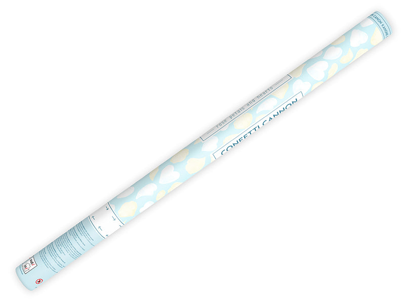 In einem Regen aus cremefarbenen Rosenblättern und weißen Herzen stehen – diesen Traum können Sie einem Brautpaar mit dieser Konfetti-Kanone ganz einfach erfüllen. Ob auf dem Weg aus der Kirche, vor dem Standesamt oder als besonderer Effekt auf den Hochzeitsfotos, dieser Moment bleibt sicher in Erinnerung.
