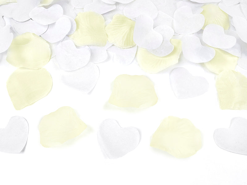Konfetti - Kanone weiße Herzen und crèmefarbene Rosenblätter