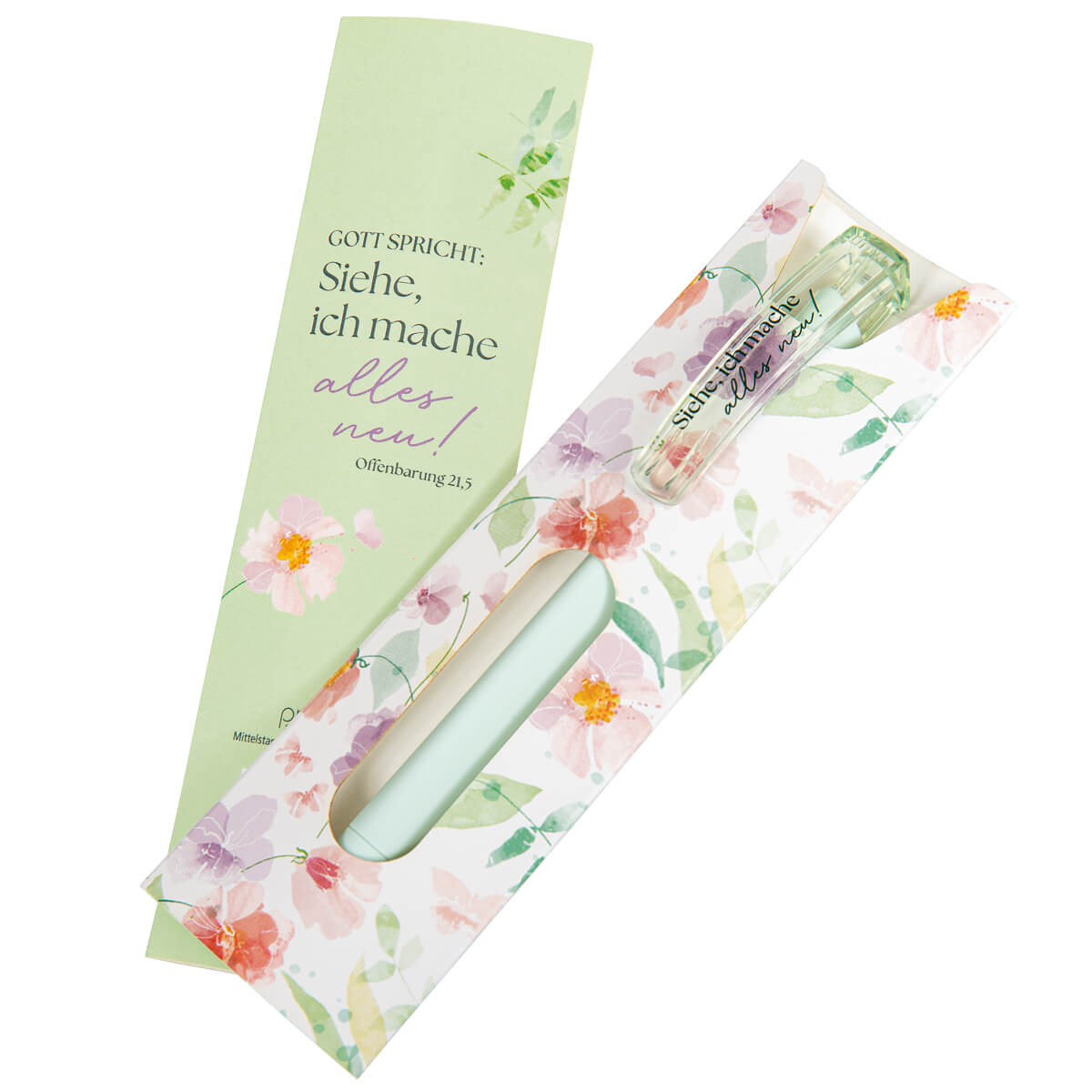 Besonders schön und direkt zum Verschenken: Der Kugelschreiber ist in einem stabilen Papp-Etui mit Jahreslosungsmotiv verpackt.
