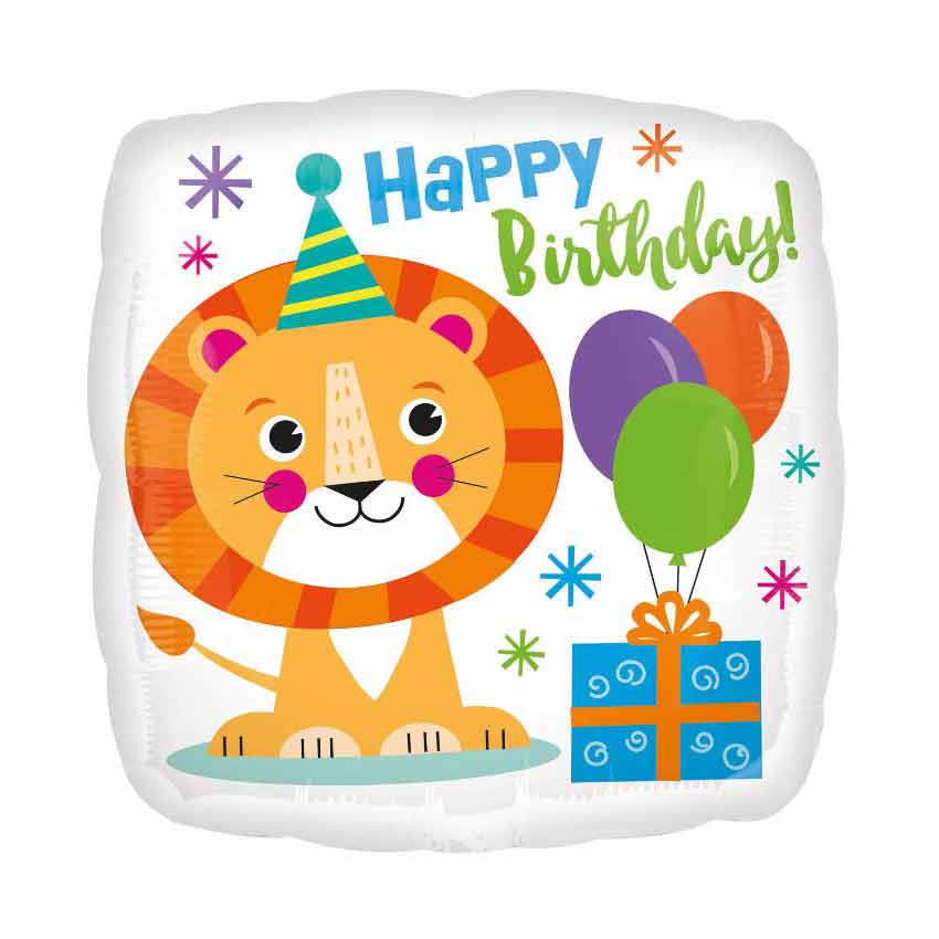 Ein eckiger Folienballon mit einem wirklich niedlichen L”wen und dieser bringt sogar ein kleines Geschenk und Luftballons mit zur Party. Ein tolles Geschenk zum Kindergeburtstag und eine hervorragende Dekoration f�r eine echte L”wen Geburtstagsparty.
