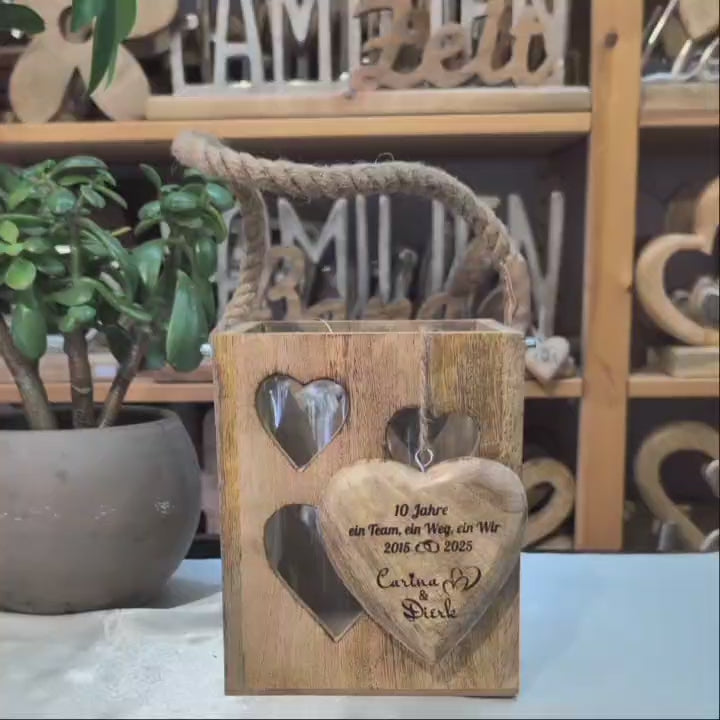 Laterne 15x18x15 cm mit graviertem Holzherz