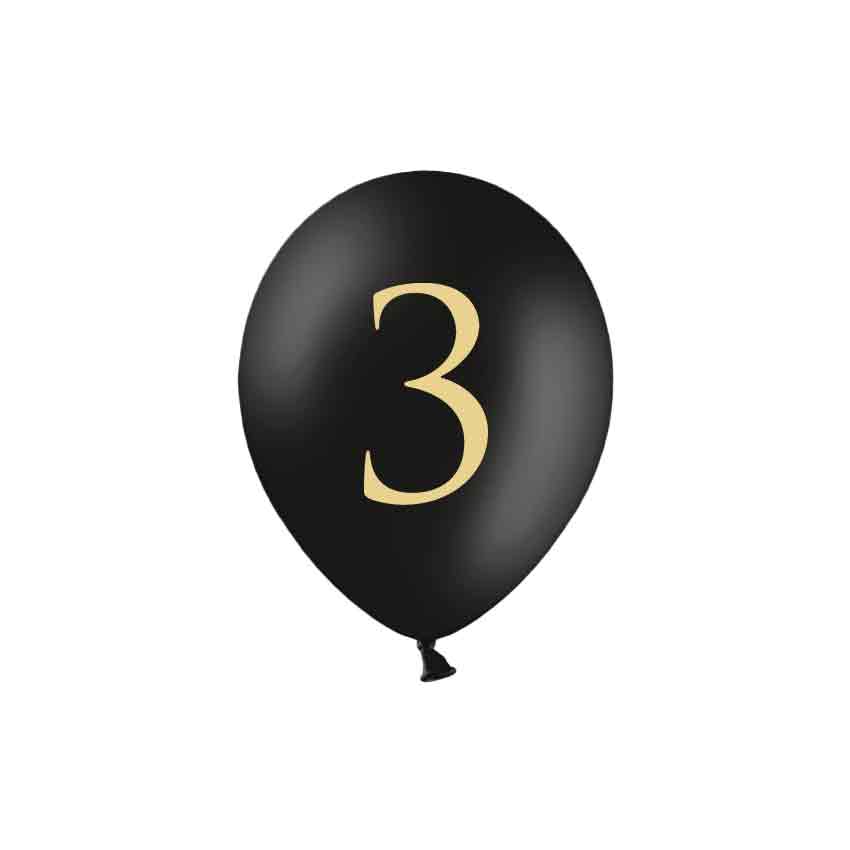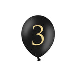 Luftballons schwarz mit Druck gold 6 Stück 30 cm Zahl 3