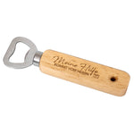 Der hochwertige Flaschenöffener besteht aus robustem Metall mit abgerundeten Kanten. Der Griff ist aus echtem Buchenholz gefertigt und zeigt als Gravur den Spruch Meine Hilfe kommt vom Herrn.