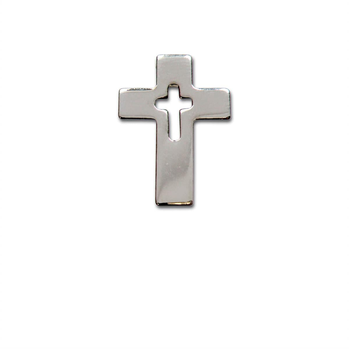 Metall-Anstecknadel Kreuz - silberfarben