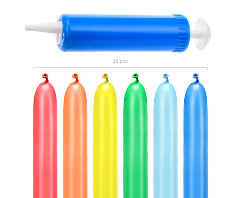 Modellierballons 30x kräftige Farben mit Pumpe | für Ballontiere