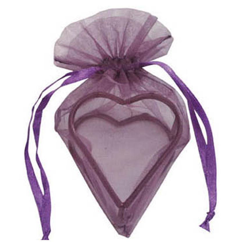 Organzasäckchen in Herzform 4 Stk. pflaume