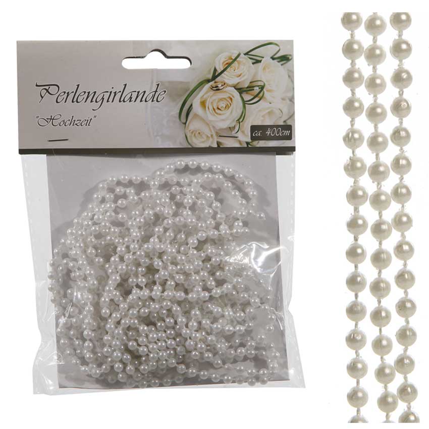 Diese weiße Perlenkette ist eine wunderschöne Hochzeitsdekoration für den Tisch,