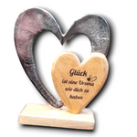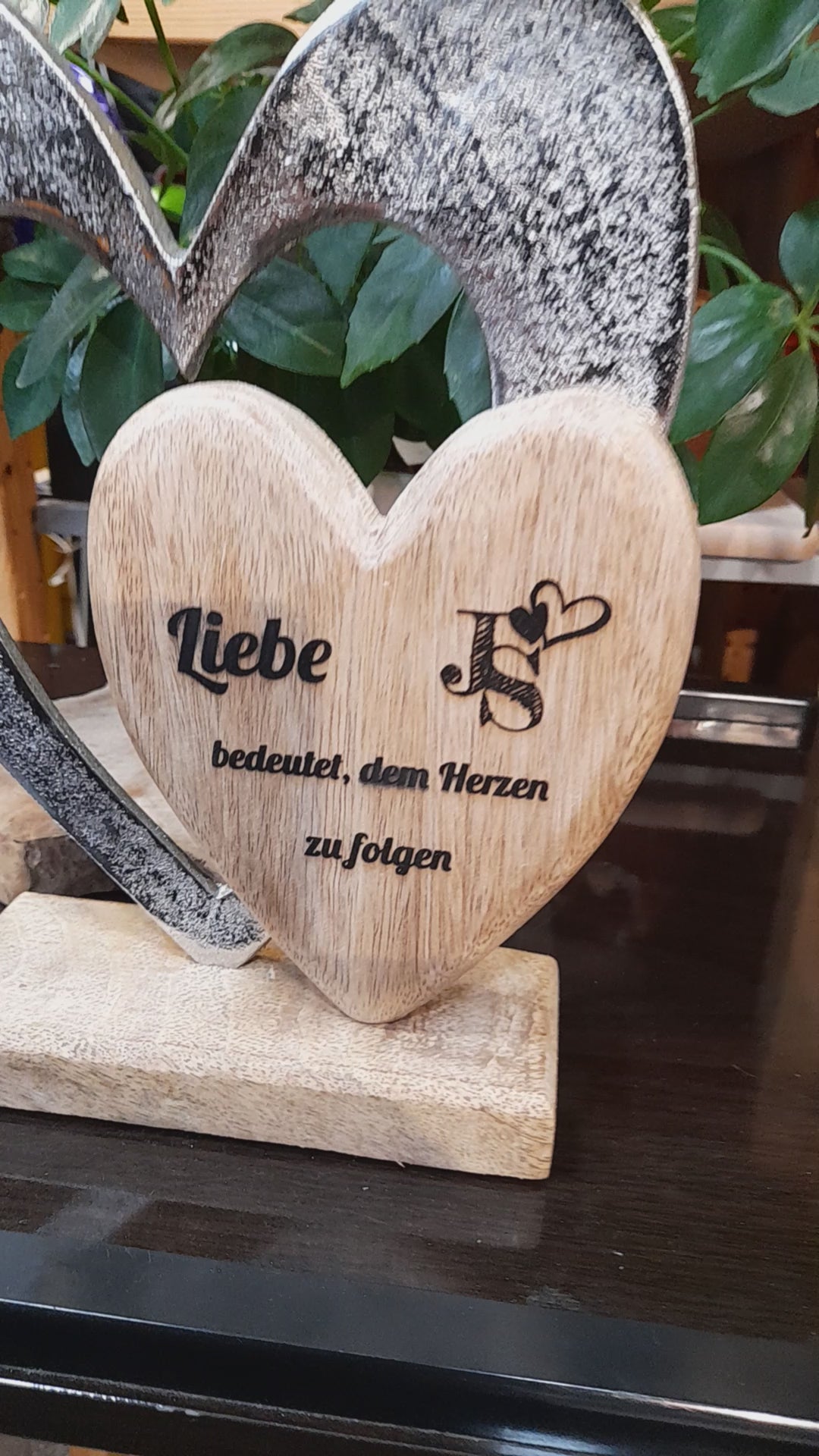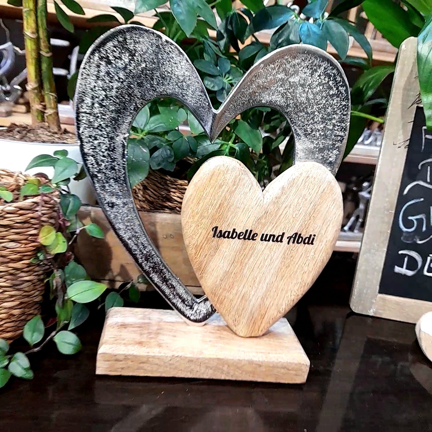 Deko Aufsteller großes Metallherz mit graviertem Herz aus Holz