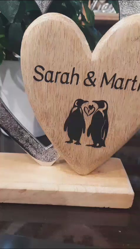 personalisiertes großes Metallherz mit Herz aus Holz 26cm