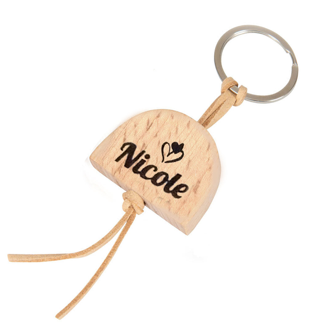 Ein liebevoll gestalteter Schlüsselanhänger in Regenbogenform, gefertigt aus naturbelassenem Holz – mit seiner angenehmen Form liegt er wunderbar in der Hand.