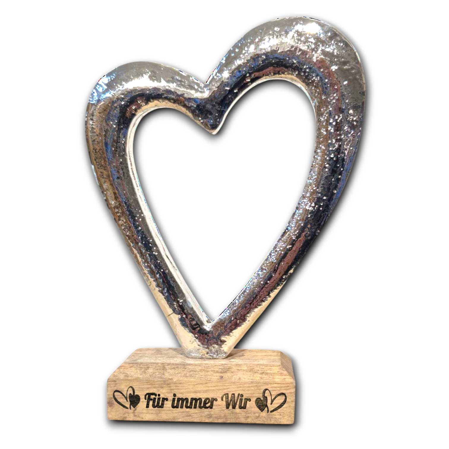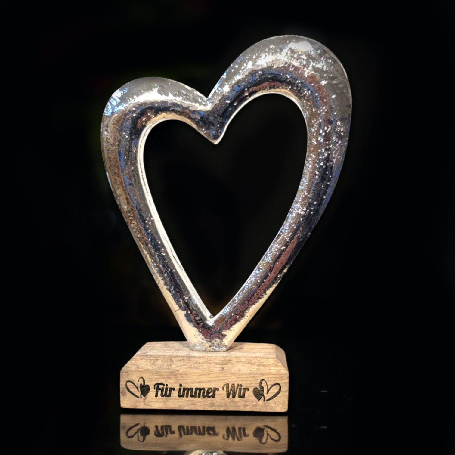 Personalisiertes Dekoherz modern | silbernes Herz auf Holzfuß 19cm