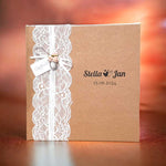 Das Gästebuch kommt im modernen Vintage Stil mit Einband aus Kraftpapier in einem natürlichen Braunton.