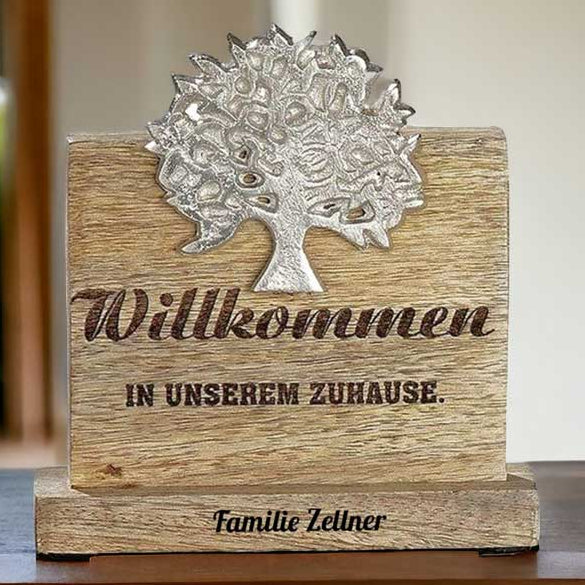 einzugsgeschenk "Willkommen" 16x15x4,5 cm personalisiertes Geschenk