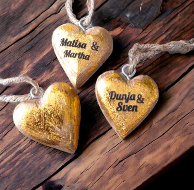 Personalisiertes Holzherz Juteschnur 5cm golden