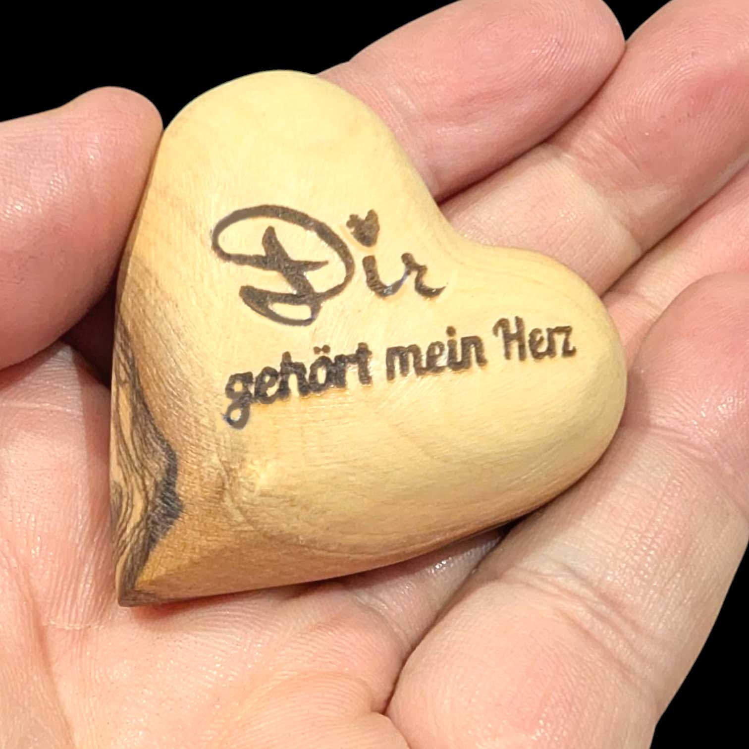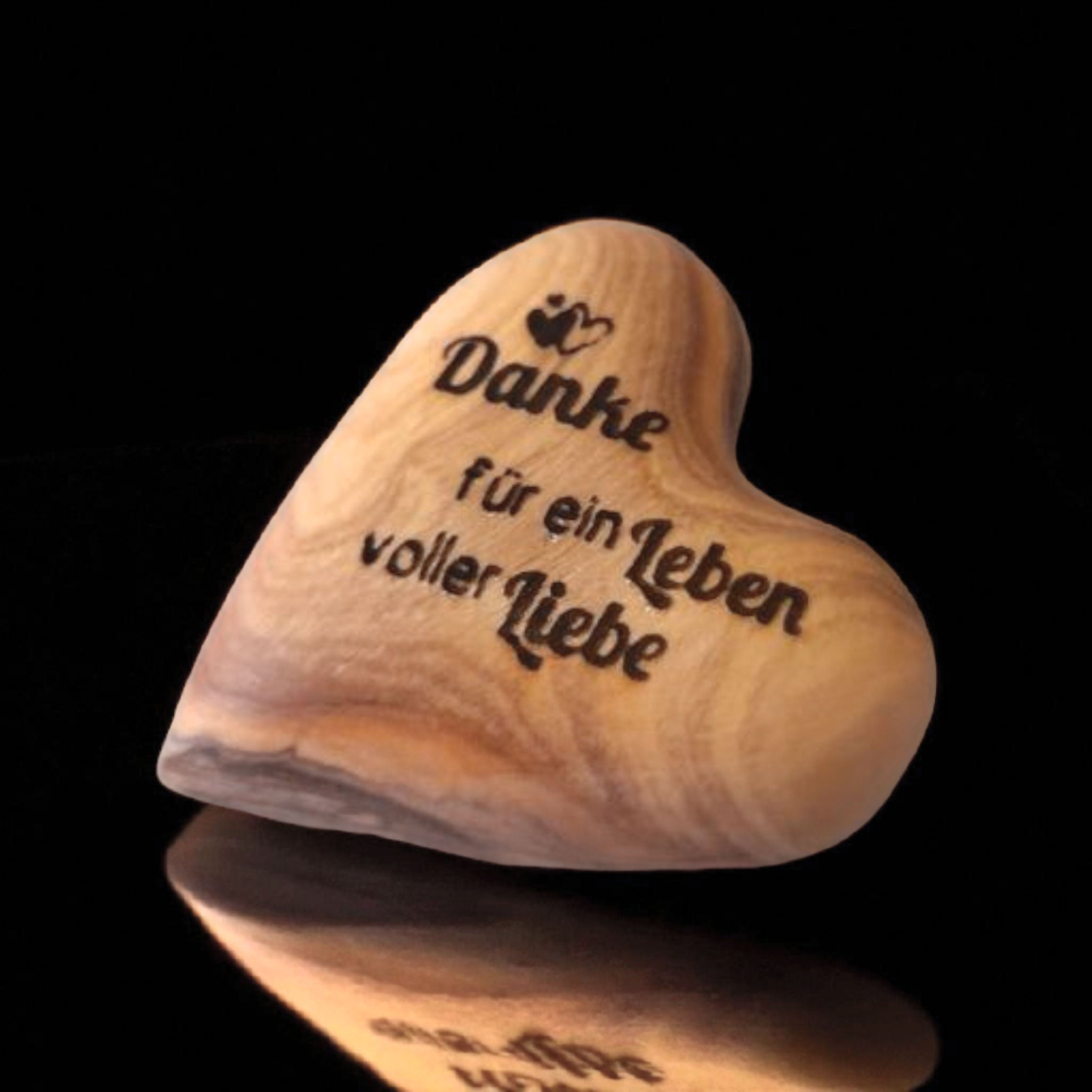 Holzherz aus Olivenholz 4x4x2 cm personalisiertes Geschenk