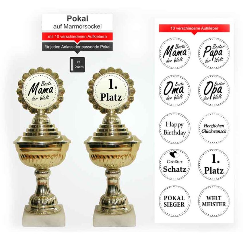 POKAL auf Marmor-Sockel 24cm (versch. Aufkleber)