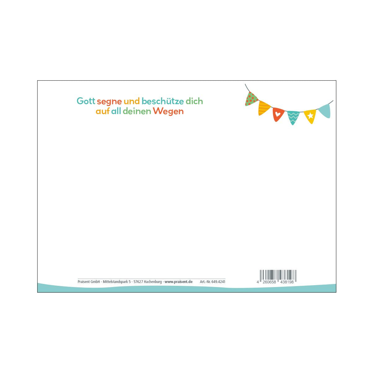 Die Postkarte mit Löwe, lustigen Schul-Piktogrammen und Text: "Jetzt bist du ein Schulkind" ist ideal, um dem Schulkind gute Wünsche mit auf den Weg zu geben, als Anhänger an einem Geschenk oder an der Schultüte.