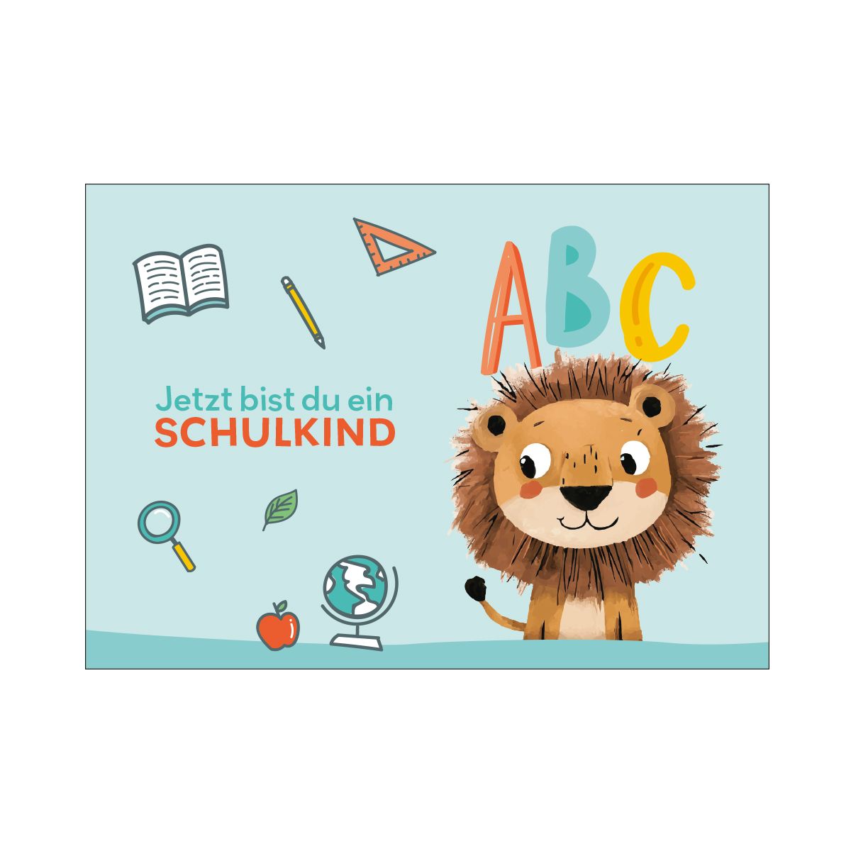 Postkarte Löwe "Jetzt bist du ein Schulkind"