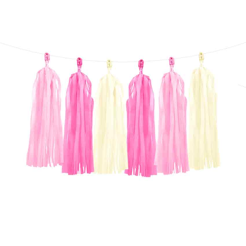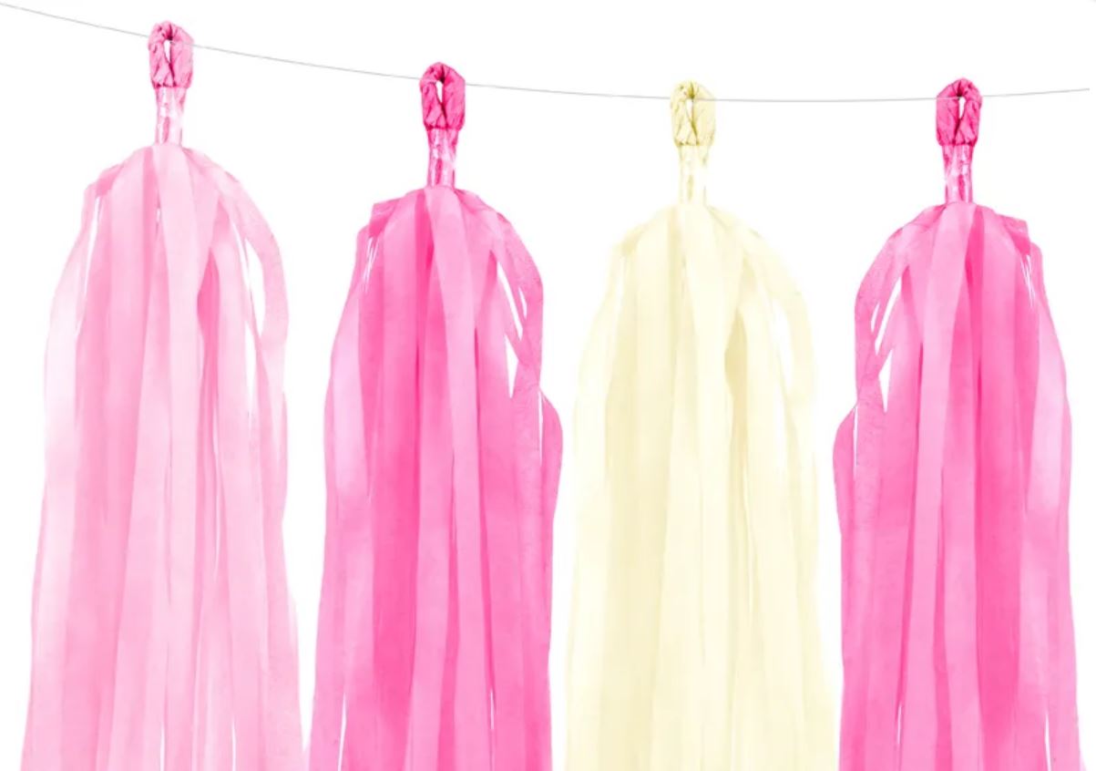 Quasten-Girlande creme-rosa-pink DIY mit 12 Quasten
