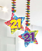 Mit diesen beiden fröhlichen Rotorspiralen im "Birthday Blocks"-Design wird der 21. Geburtstag garantiert zum Hingucker. Die farbenfrohen Spiralen mit der Zahl "21" setzen festliche Akzente in jedem Raum.