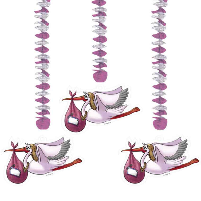 Diese hübschen Rotorspiralen mit Storch-Motiv sind eine liebevolle Dekoration zur Geburt eines Mädchens. Sie lassen sich leicht aufhängen und sorgen mit ihren schimmernden Farben für eine festliche Atmosphäre im Raum.