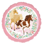 Dieser sch”ne Folienballon "Beautiful Horses" l„sst sicherlich alle M„dchenherzen h”her schlagen. Verziert mit einem rosafarbenen Rand und bedruckt mit zwei wundervollen Pferden und Blumenranke ist er das perfekte Geburtstagsgeschenk oder Mitbringsel f�r alle Pferden„rrinnen.