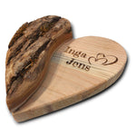 personalisiertes Holzherz mit Rinde 15cm - mit Gravur zur Hochzeit