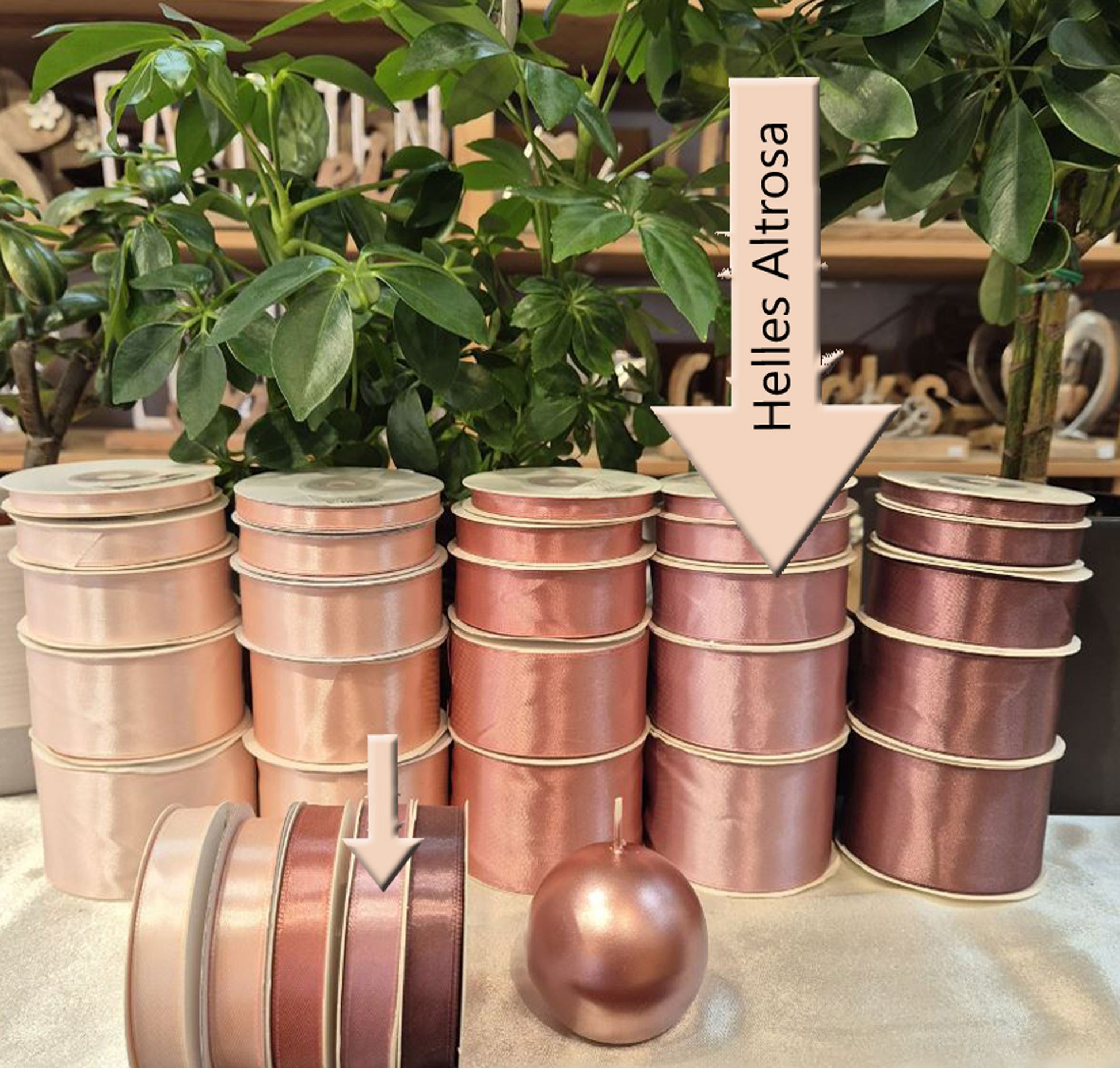 Hellaltrosa lässt sich wunderbar mit Creme, Roségold oder zartem Mintgrün kombinieren – ideal für romantische Frühlingshochzeiten, Babyshowers oder feine DIY-Projekte mit femininer Note.