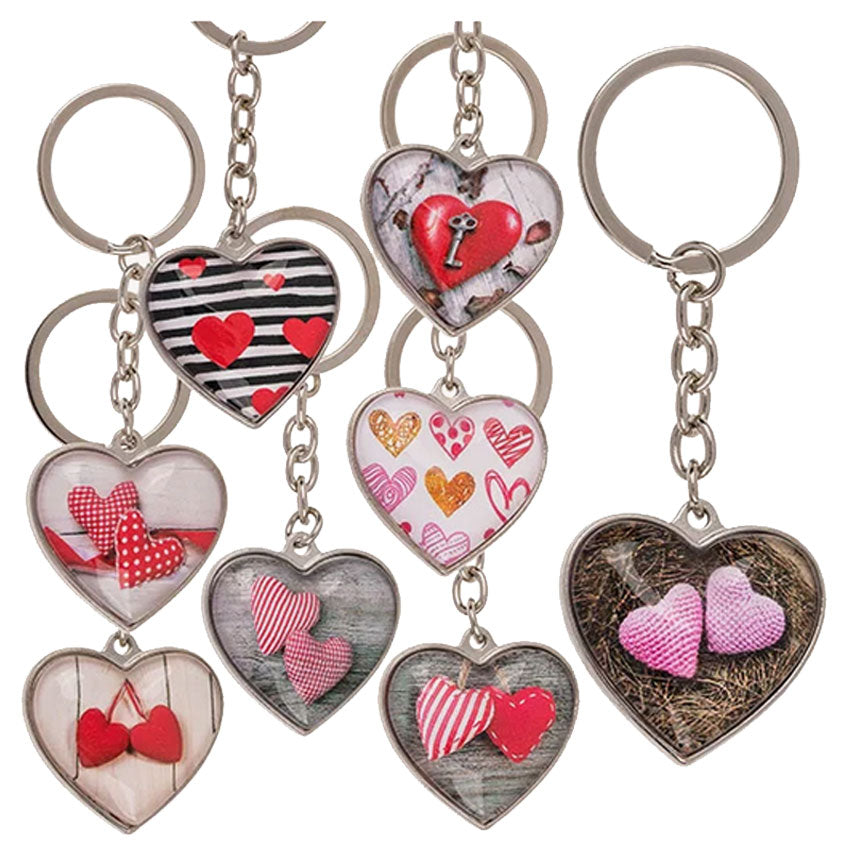 Ein handlicher, kleiner Schlüsselanhänger aus hochwertigen Materialien. Der Herz Schlüsselanhänger besticht durch seine mehrfarbigen Fotomotive. Jedes der Designs ist passend zur Form des Schlüsselanhängers mit einem schicken Herz Motiv gestaltet.