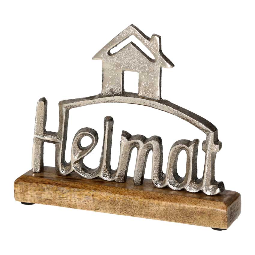 Schrift Heimat silber auf Holzfuß 20x18 cm