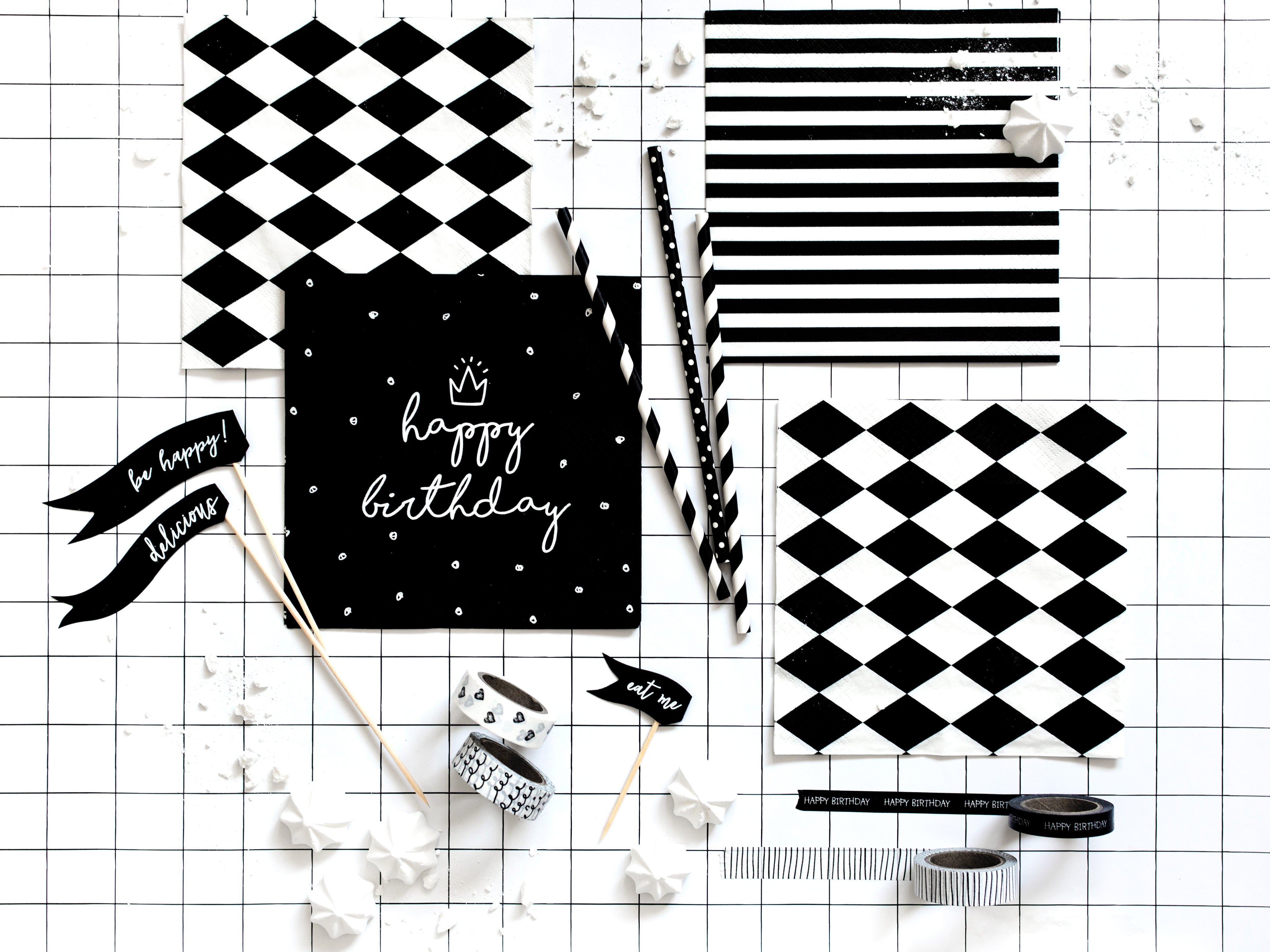 Ob Black and White Party, Retro Geburtstag oder einfach als schöne Tischdekoration, diese Servietten sind immer eine gute Wahl.