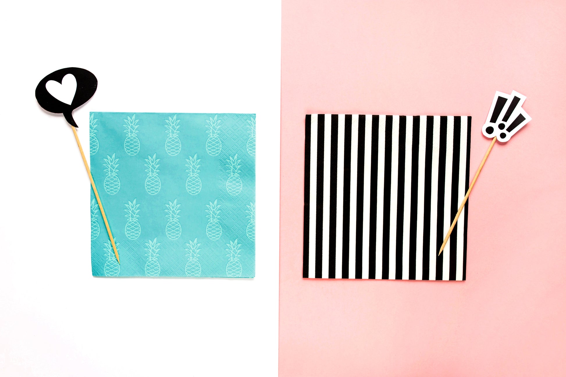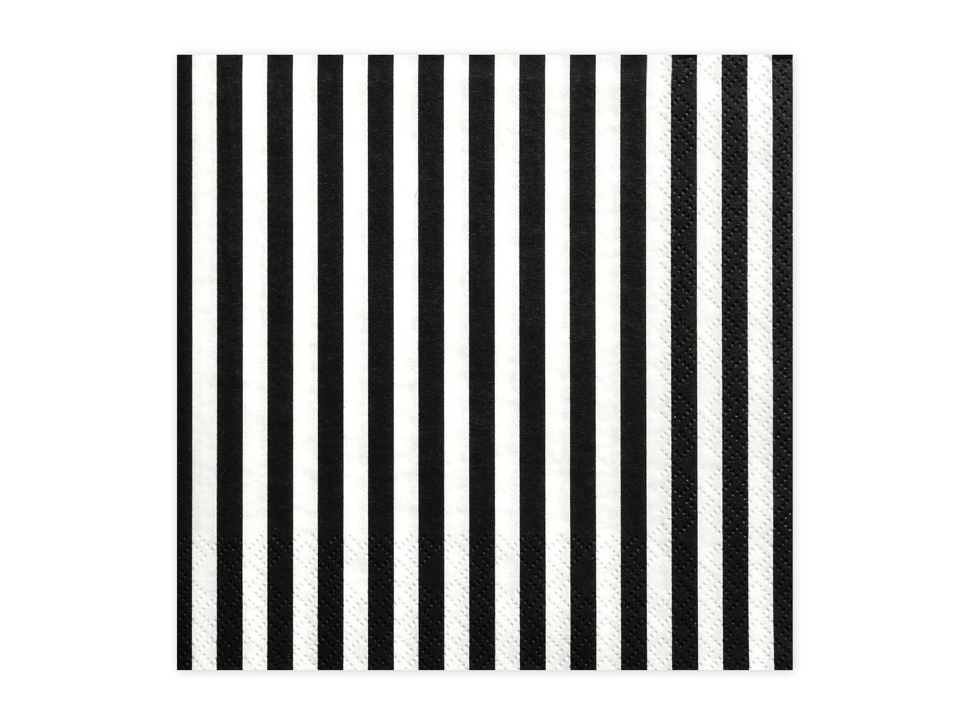 Tolle Servietten mit kleinem Streifenmuster. Die weißen Servietten mit schwarzem Druck sind gleichzeitig peppig und modern, aber durch die schlichten Basicfarben eingetlich immer passend.