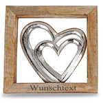Wanddeko Metallherzen 20x20cm im gravierten Holzrahmen