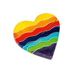 Handwerkskunst aus Kenia: Ein bunt bemalter Speckstein in Herzform, fertig zum verschenken im Organzabeutel mit Grußkärtchen "Von Herzen für dich".