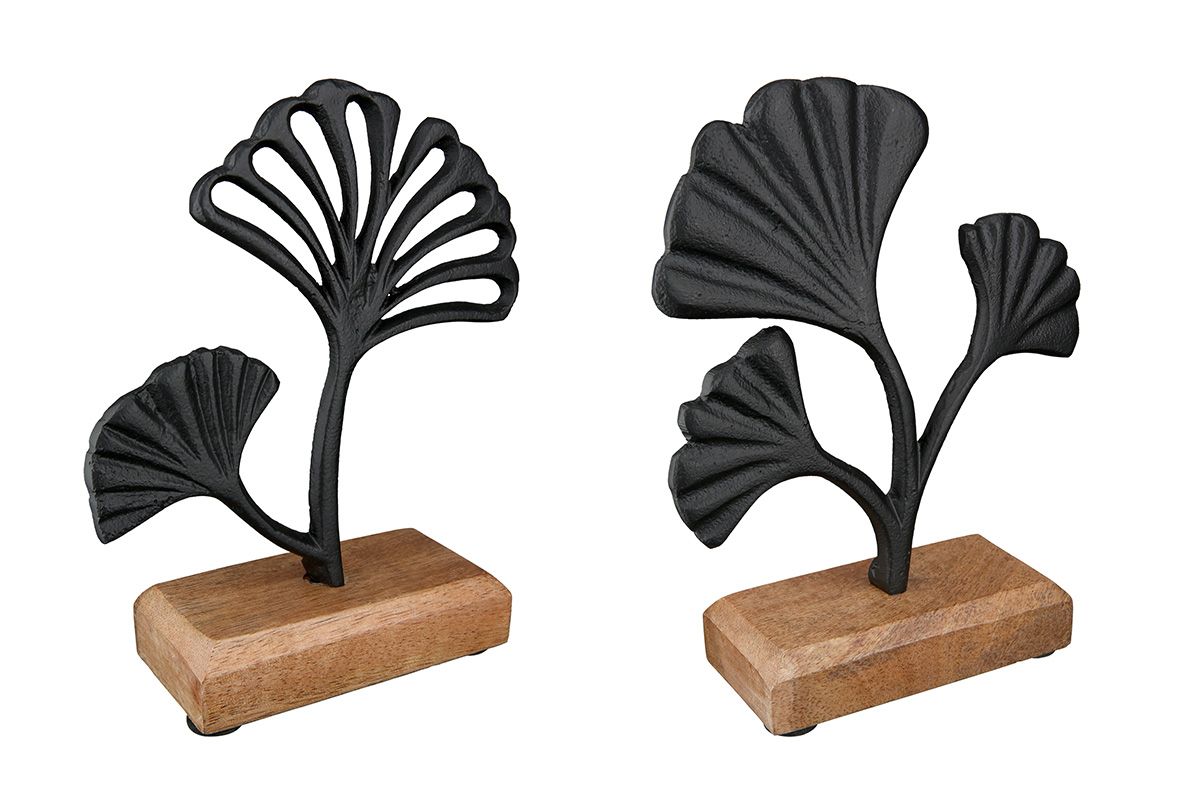 Standrelief Ginkgo Mangolholz schwarz 17cm