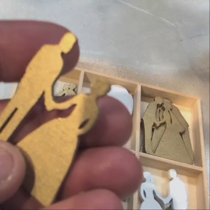Streudekoration Hochzeit aus Holz in weiß und gold 18 Stk. 6407