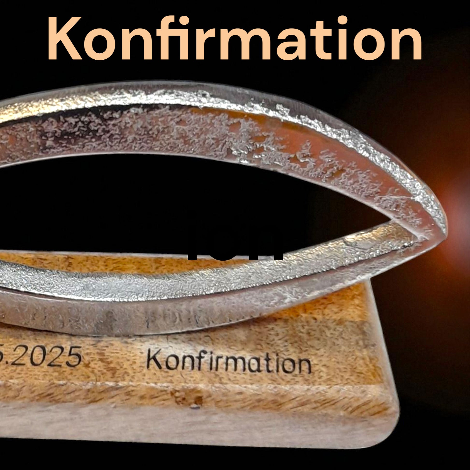 Der Sockel aus natürlich gemasertem Holz bietet Platz für deine Wunschgravur.