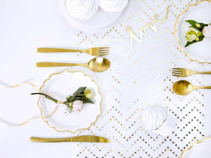Tischläufer Sterne 36cm x 9m weiß golden