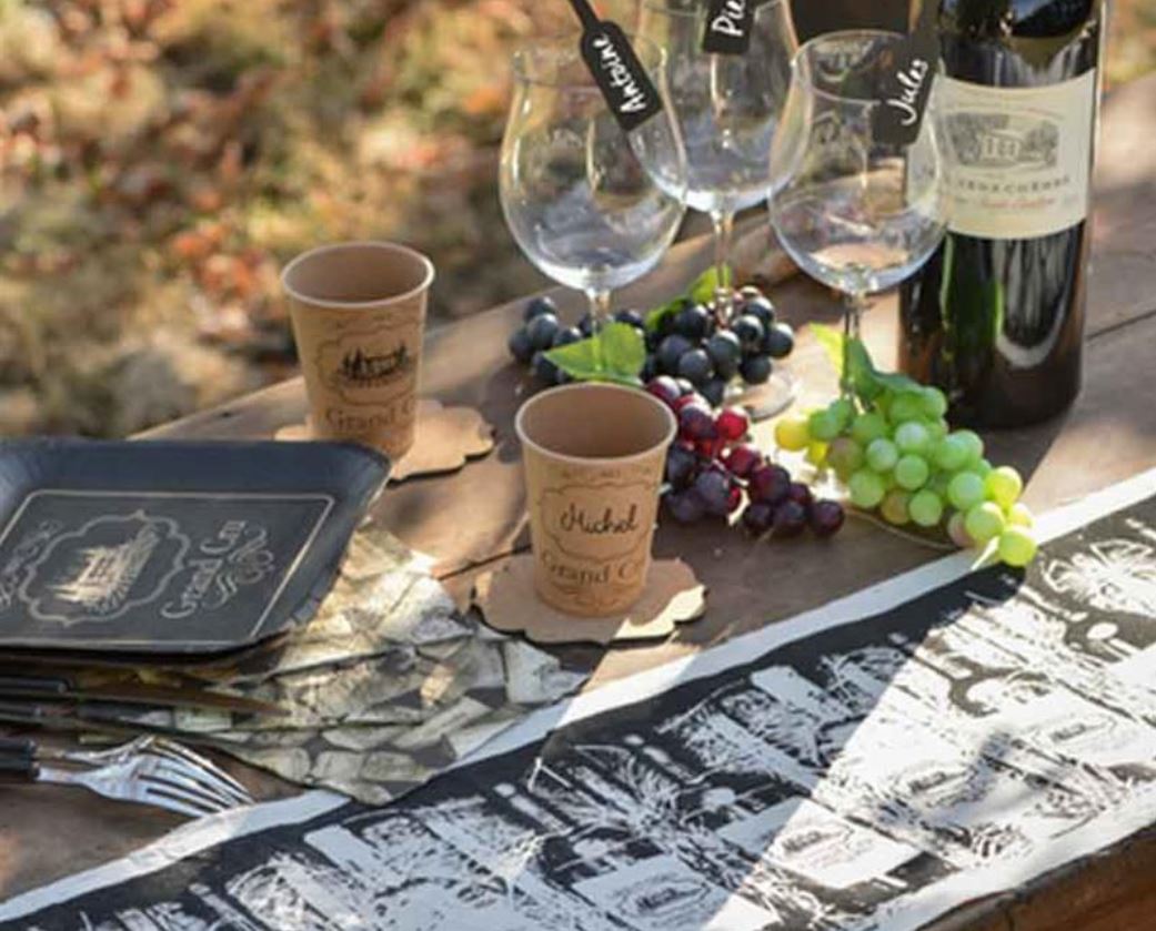 Eine Weinparty sorgt für Geselligkeit und Freude. Wein ist stets aktuell und ein allseits beliebtes Getränk und bietet somit immer ein passendes Motto für Feste und Tischdekorationen.